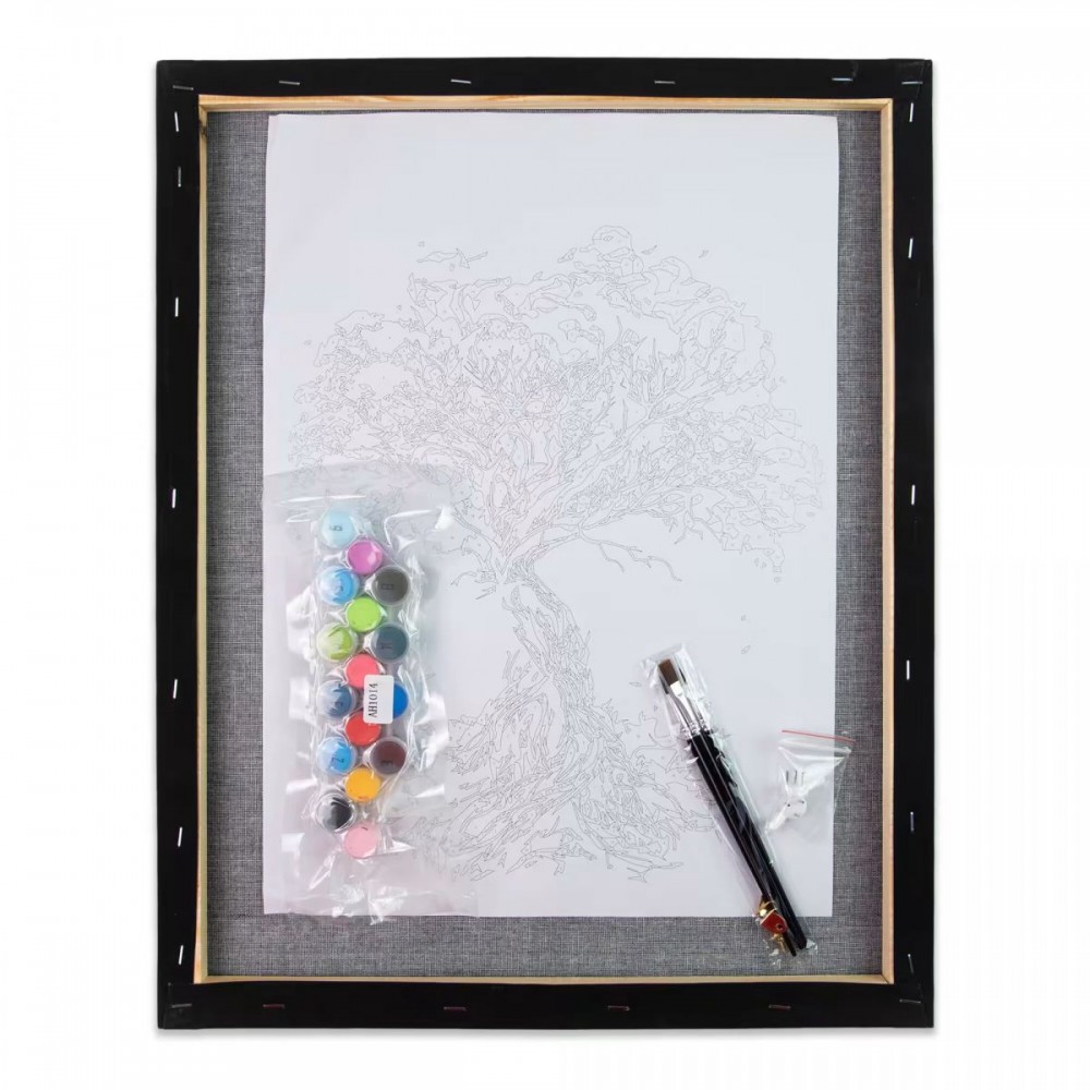 Картина за номерами на чорному фоні. Для того, щоб намалювати картину, необхідно малювати за пронумерованими контурами, які відповідають кольору фарби. У наборі: натуральне полотно на підрамнику з галерейною натяжкою, паперовий дублікат з контурним малюнком картини (на картині нанесена схема контурів зображення з нумерацією), нейлонові художні пензлі, палітра акрилових фарб у контейнерах. Усі необхідні фарби вже в комплекті та не потребують змішування. Розмір: 40х50 см.