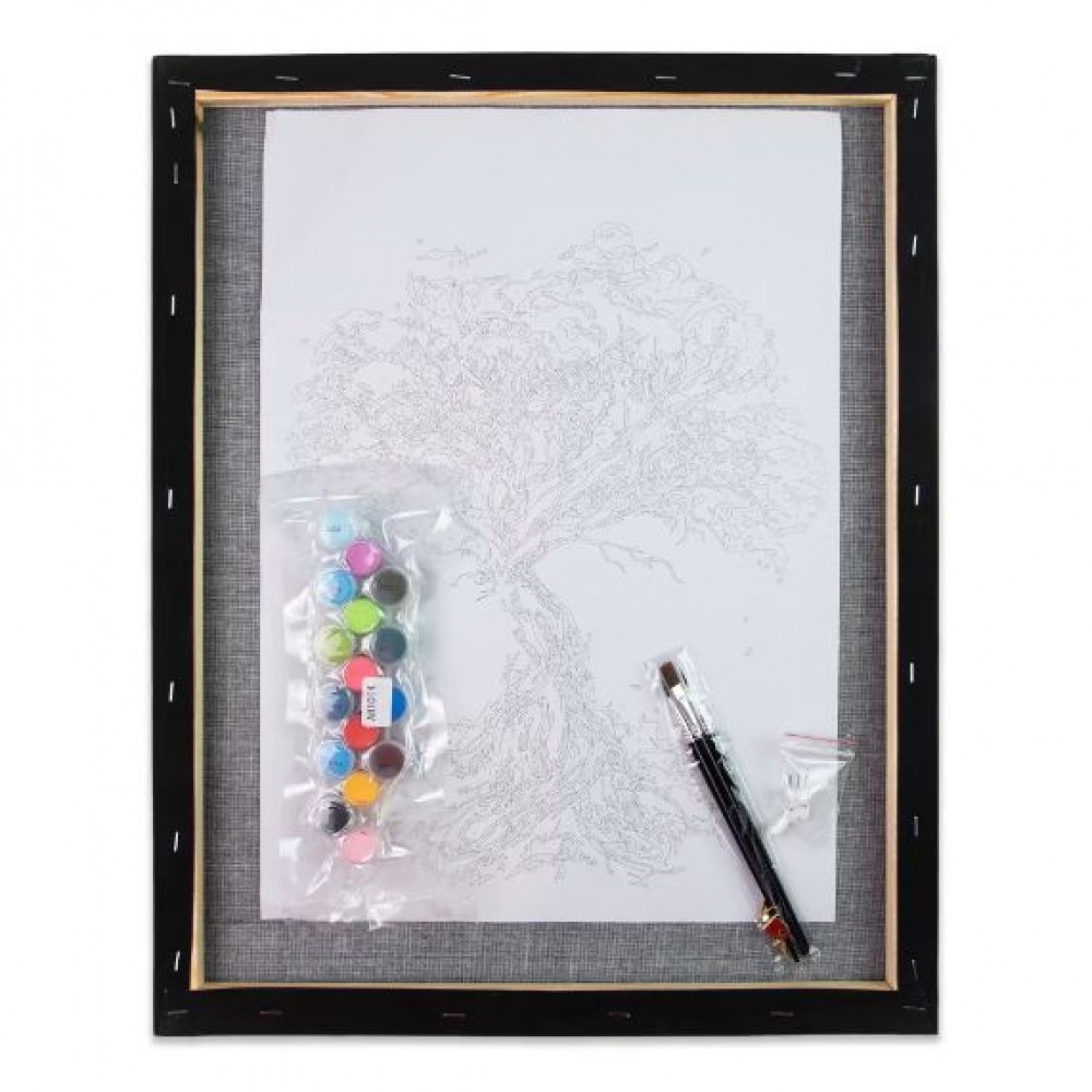 Картина за номерами на чорному фоні. Для того, щоб намалювати картину, необхідно малювати за пронумерованими контурами, які відповідають кольору фарби. У наборі: натуральне полотно на підрамнику з галерейною натяжкою, паперовий дублікат з контурним малюнком картини (на картині нанесена схема контурів зображення з нумерацією), нейлонові художні пензлі, палітра акрилових фарб у контейнерах. Усі необхідні фарби вже в комплекті та не потребують змішування. Розмір: 30х40 см.