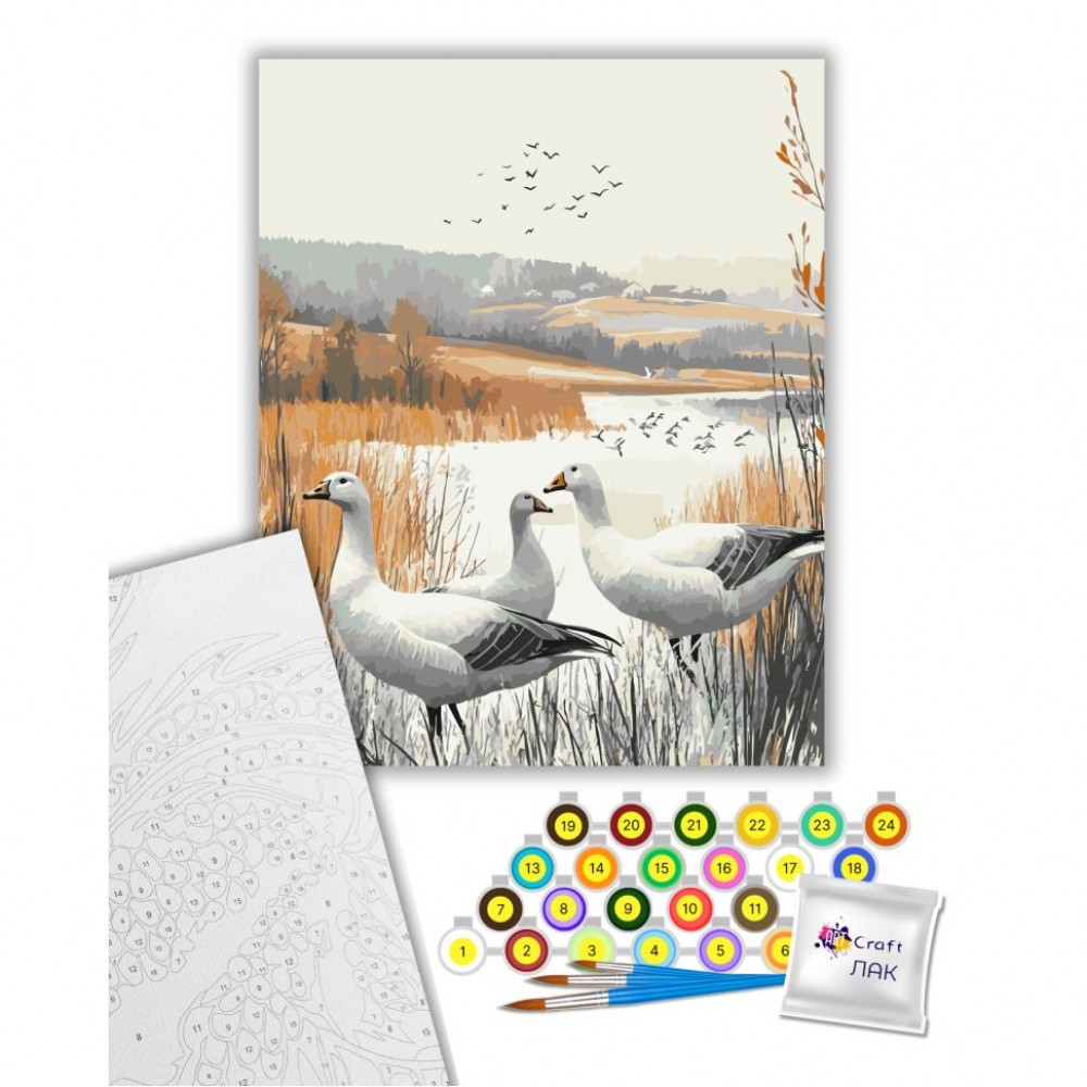 Картина за номерами. Для того, щоб намалювати картину, необхідно малювати за пронумерованими контурами, які відповідають кольору фарби. У наборі: полотно на підрамнику з галерейною натяжкою, паперовий дублікат з контурним малюнком картини (на картині нанесена схема контурів зображення з нумерацією), художні нейлонові пензлі, палітра акрилових фарб у контейнерах. Усі необхідні фарби вже в комплекті та не вимагають змішування. Розмір: 40х50 см.