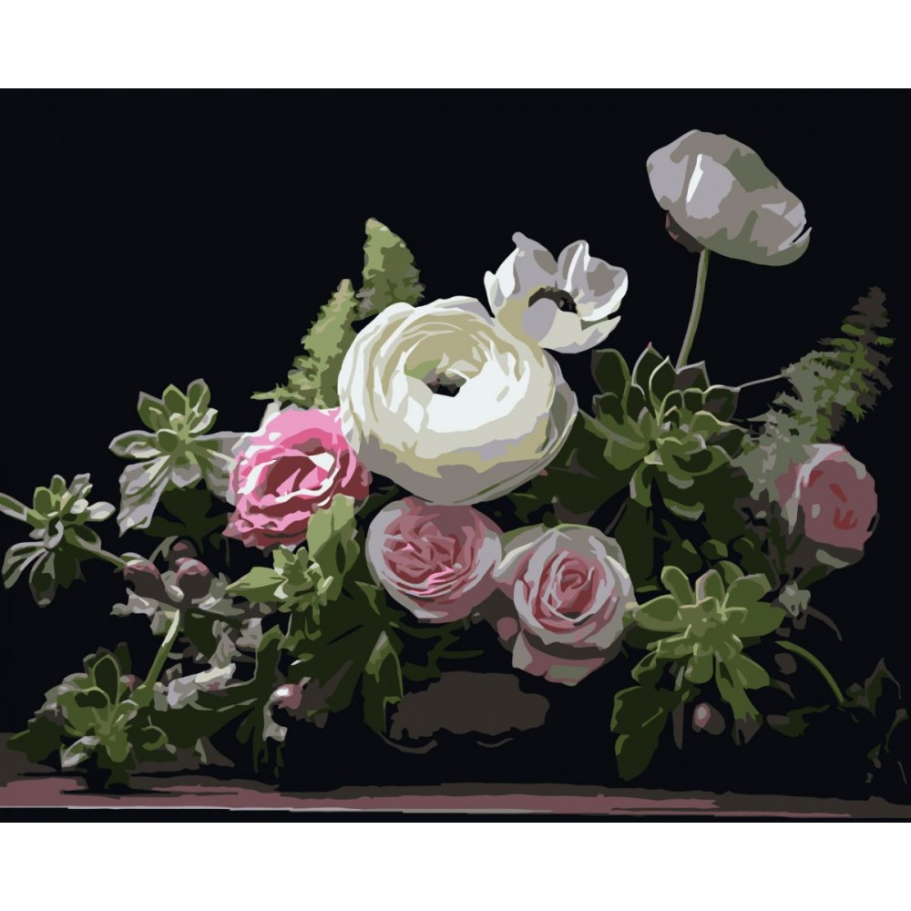 Інтернет-магазин eToys пропонує вашій увазі товар "Картина за номерами Strateg Ніжний квітковий натюрморт на чорному фоні 40Х50 (AH1261)" за ціною 434 грн..