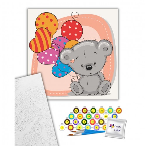 Інтернет-магазин eToys пропонує вашій увазі товар "Картина за номерами "Ведмежа з кульками" 30х30 см" за ціною 254 грн..