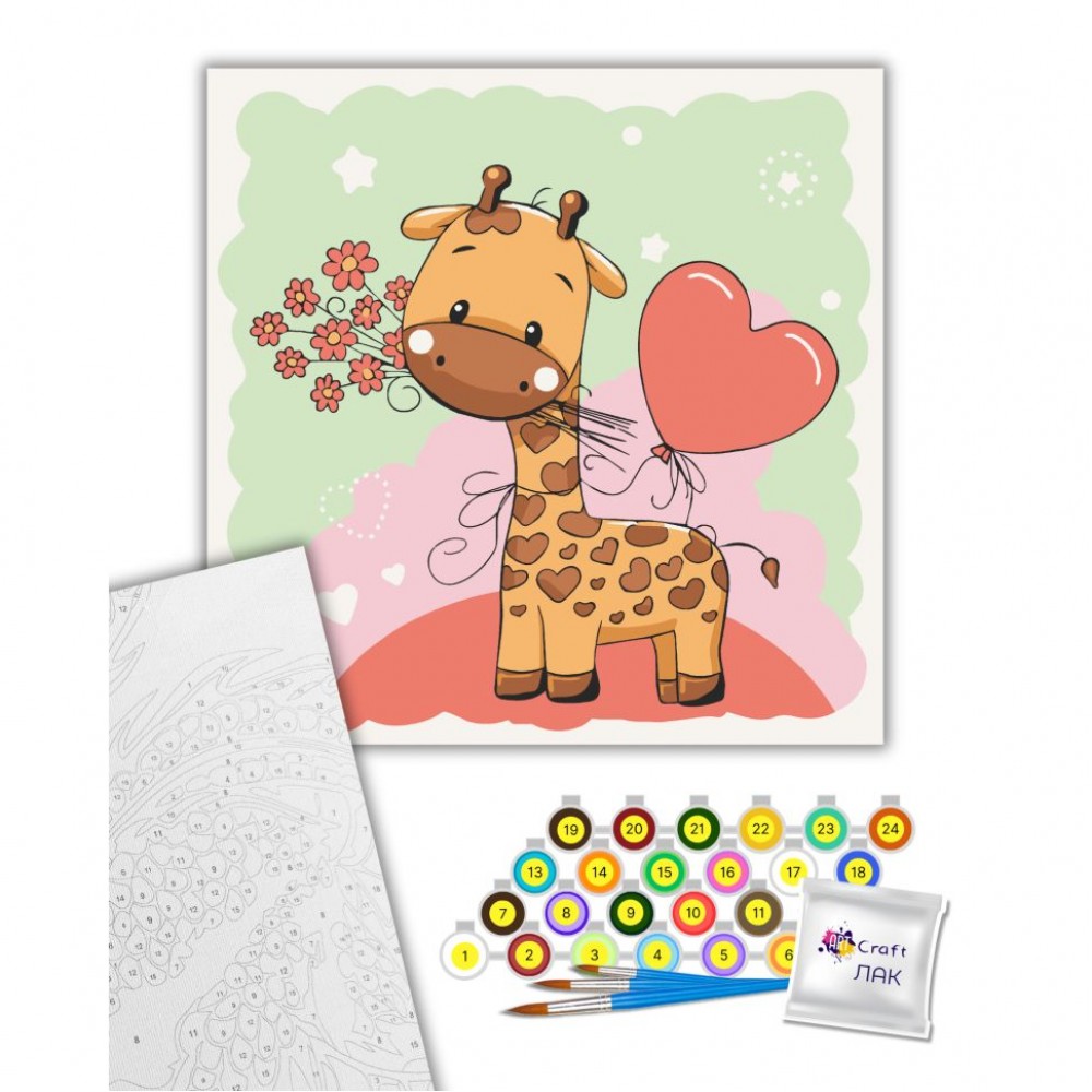 Інтернет-магазин eToys пропонує вашій увазі товар "Картина за номерами "Жирафик з квітами" 30х30 см" за ціною 254 грн..