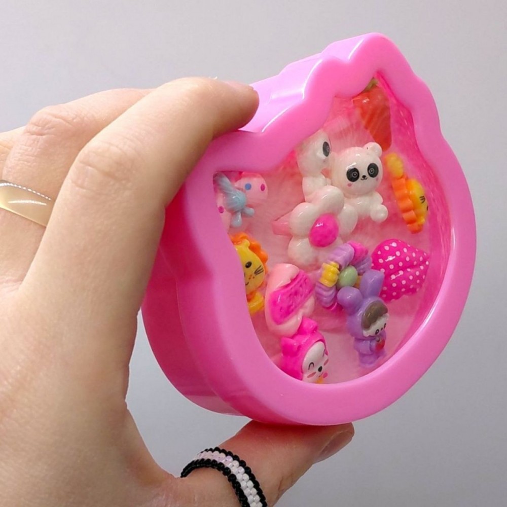Набір дитячих пластикових кілець у подарунковій коробці - яскравий та милий аксесуар для маленьких модниць. Різноманітні форми та кольори дозволяють щодня створювати нові образи та доповнювати святкові вбрання.