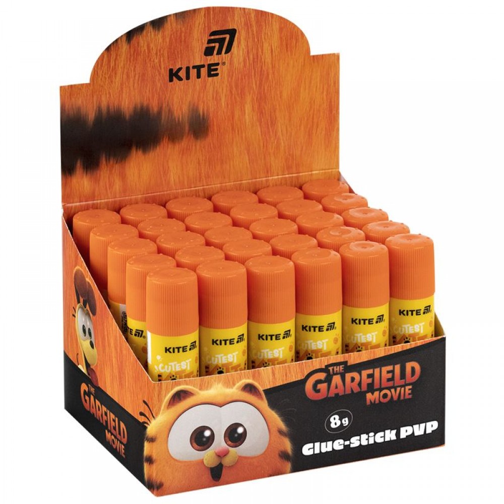 Клей-олівець PVP, 8 г з індикатором Kite Garfield. Об'єм 8 г. Термін придатності 24 місяці. Клей має однорідну консистенцію і нейтральний запах. Клей-олівець легко склеює папір, картон, фотографії. PVP склад не містить розчинників, морозостійкий. Легко наноситься і швидко сохне, слід клею зникає відразу після нанесення. Ідеально підійде для уроків праці в садку і школі.