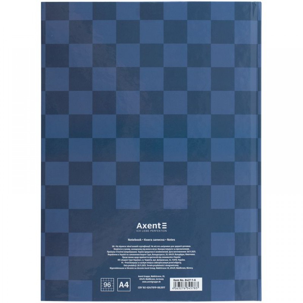 Записна канцелярська книга Axent ідеально підходить для щоденних записів, ведення обліку, замальовок схем і графіків, а також для фіксації великого обсягу інформації. Тверда обкладинка з щільного картону забезпечує збереження акуратного зовнішнього вигляду протягом тривалого користування. Білий папір у клітинку (5x5 мм) гарантує комфортне письмо. Щільність паперу становить 55 г/м². Розмір книги 203*273 мм., 96 аркушів. Глянцева ламінація на обкладинці додає елегантності.