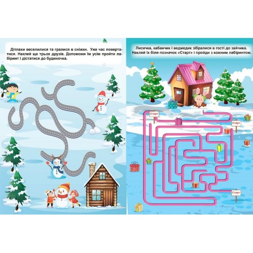 У чарівну зимову пору всі дорослі хочуть створити для дітей неймовірну новорічну атмосферу. Книжки серії "Зимові ігри та завдання" стануть у цьому найкращими помічниками. А книга завдань з наліпками "Зимові лабіринти" дасть можливість батькам весело та с користю провести час із малечею. Виконання запропонованих завдань розвиватиме в дитині посидючість, уважність, творче мислення, дрібну моторику, а додаткові мотиваційні наліпки піднімуть настрій.