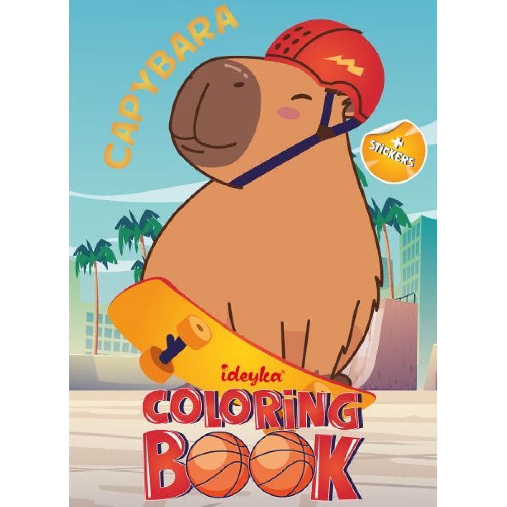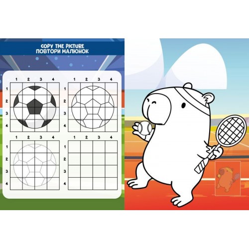 Вік: 4–8 років. Подаруйте дитині не просто книжку-розмальовку — подаруйте яскраву історію! Книжка-розмальовка зі стікерами - Капібара і спорт для вашої творчості. Зроблено в Україні.