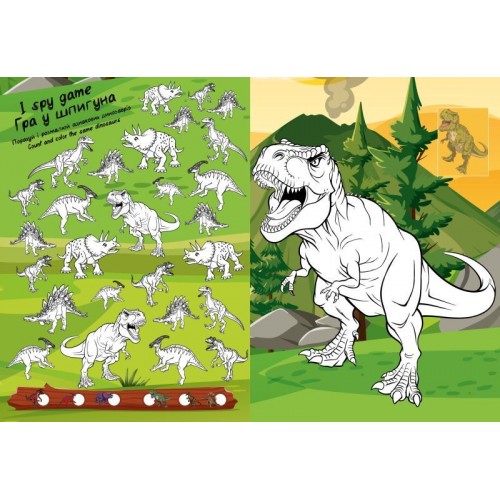 Вік: 4–8 років. Подаруйте дитині не просто книжку-розмальовку — подаруйте яскраву історію! Книжка-розмальовка зі стікерами - Світ хижих динозаврів для вашої творчості. Зроблено в Україні.