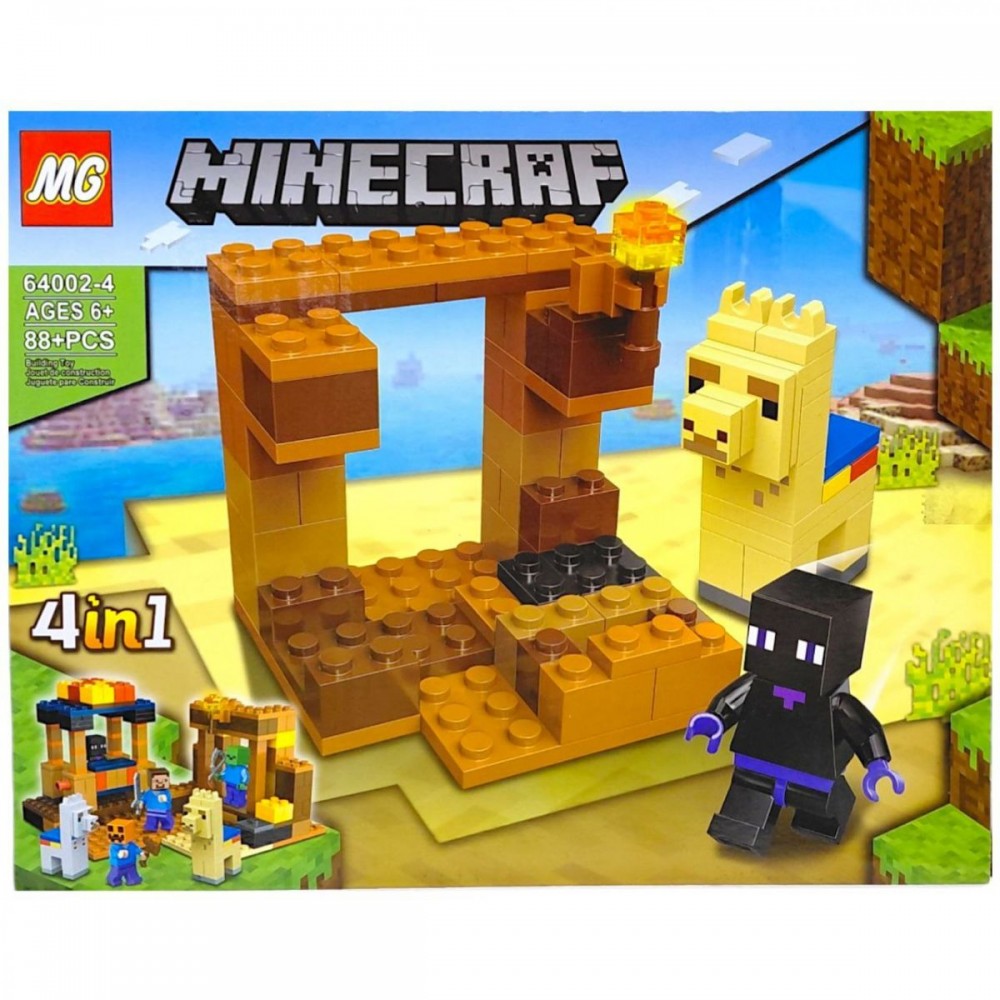 Конструктор MG 64002 виконаний у стилі популярної кубічної гри та дозволяє зібрати тематичну сцену з персонажами та додатковими елементами. У комплекті приблизно 88 деталі, з яких можна створити різні варіанти моделей (формат 4 в 1).