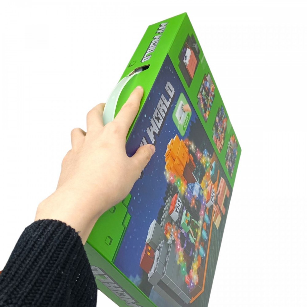 Набір конструктора «Minecraf» - захоплива гра, головна ціль якої — зібрати маленький острівець з персонажем! У комплекті присутня гірлянда що доповнює своєю красою будівлю мерехтячи різними кольорами, та створює затишну атмосферу навколо конструктору. Розвиває логіку шляхом поєднання правильних деталей між собою. У наборі присутні 165 різних деталей. Виготовлений з пластику. Рекомендовано для діток від 6 років.