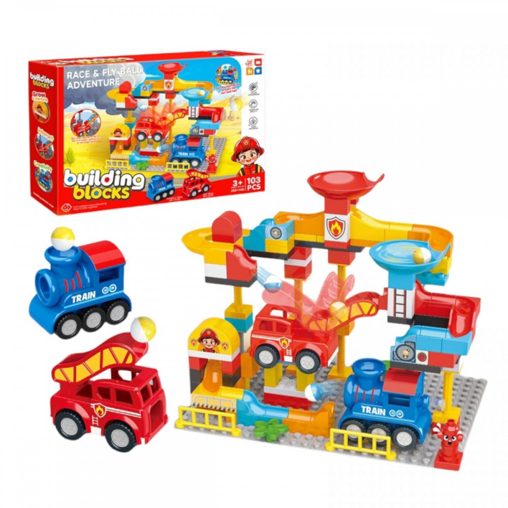 Інтернет-магазин eToys пропонує вашій увазі товар "Конструктор “Пожежна частина”, 103 деталі, великі елементи, гра з кулькою, в коробці" за ціною 1 406 грн..