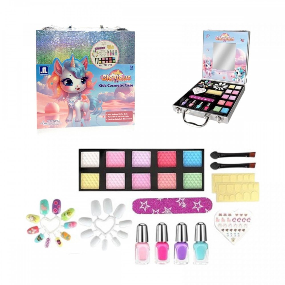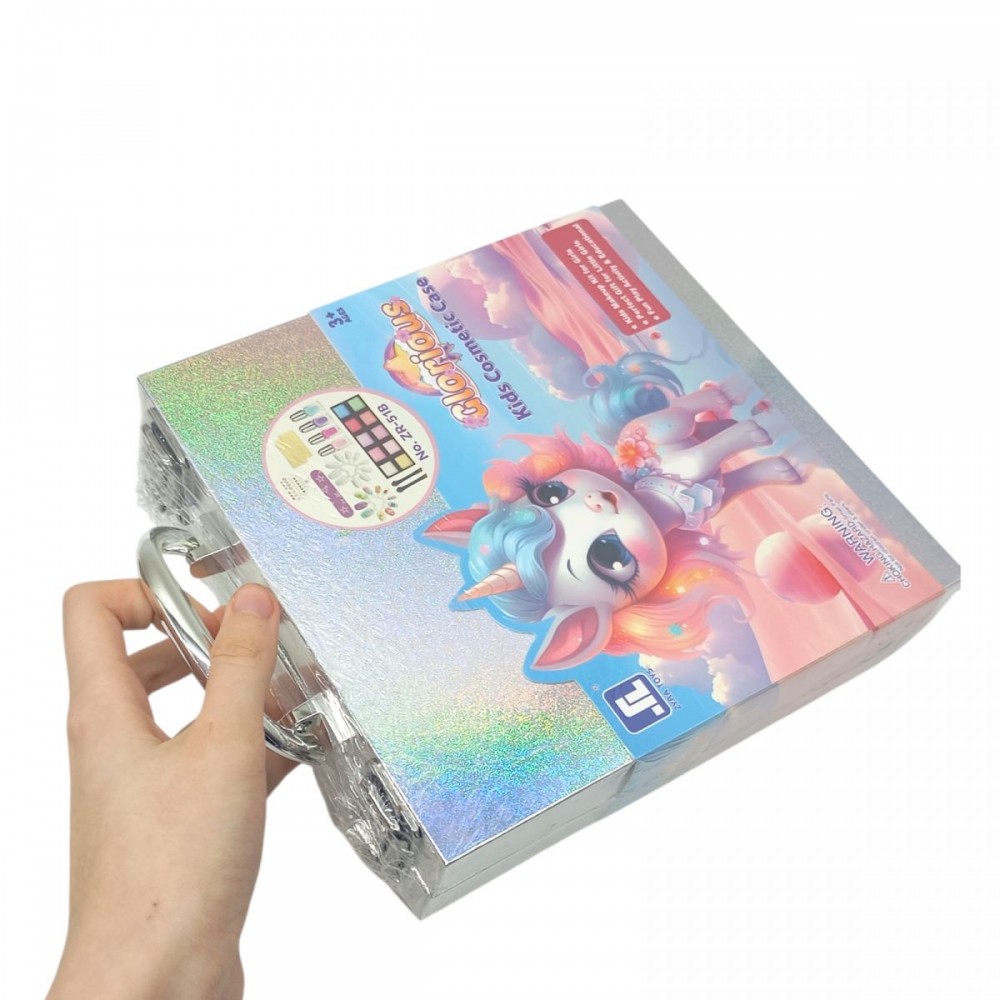Перетвори гру у справжній б’юті-салон разом з чарівним набором "Блискучий єдиноріг"! У яскравому чемоданчику з єдинорогом малеча знайде все необхідне для створення яскравого образу: тіні, блиски, лаки для нігтів, наклейки та аксесуари. Безпечна дитяча косметика на водній основі. Яскравий чемоданчик з дзеркалом для зручної гри. Ідеально для рольових ігор та розвитку фантазії. Легко змивається водою. Підходить для дітей від 5 років. В комплекті присутньо 10 кольорів тіней для повік, 4 кольори лаків для нігтів, 1 пилка для нігтів, накладні нігті та клейкі смужки, наклейки для дизайну, аплікатори для тіней, дзеркало у валізці. Рекомендовано для дітей від 5 років.
