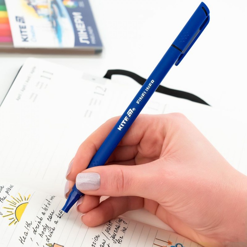 Лінери кольорові Kite Creative – яскравий набір для творчості та організації нотаток. Вони чудово підходять для чіткого та акуратного підкреслення деталей, створення схем, малювання скетчів, ведення конспектів чи планерів. Особливості: • 24 яскравих кольори – для креативних ідей та організації записів; • тригранний ергономічний корпус для комфортного письма; • колір корпусу відповідає кольору чорнил – легко знайти потрібний відтінок; • тонкий пишучий вузол (0,4 мм) для точних ліній; • стильний прозорий пенал для зберігання та транспортування.