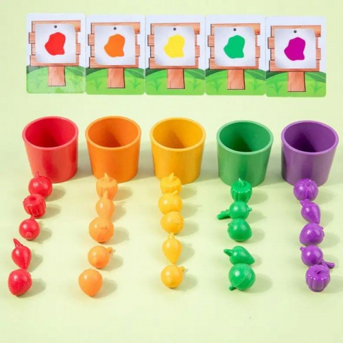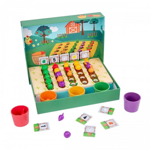 Інтернет-магазин eToys пропонує вашій увазі товар "Логічна гра дерев’яна основа, 5 чаш для сортування, 25 гумових овочів, 10 двосторонніх карток із завданнями" за ціною 915 грн..