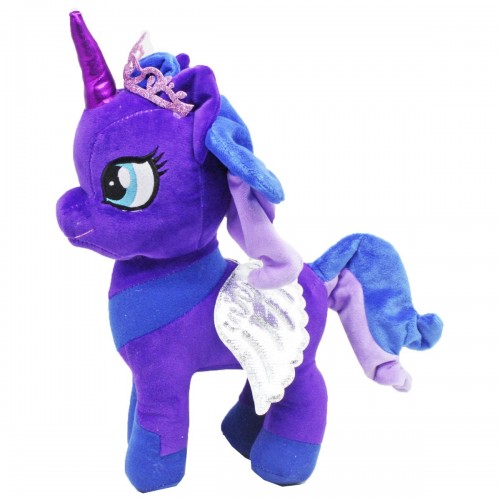 Чарівна мʼяка іграшка у вигляді поні-єдинорога, виконана у стилістиці популярного мультсеріалу "My little pony" (Моя маленька поні). Ріг та крильця виконані з красивої блискучої тканини. Іграшка дуже мʼяка і приємна на дотик, якісна та міцна. Розмір – 25х26х10 см.
