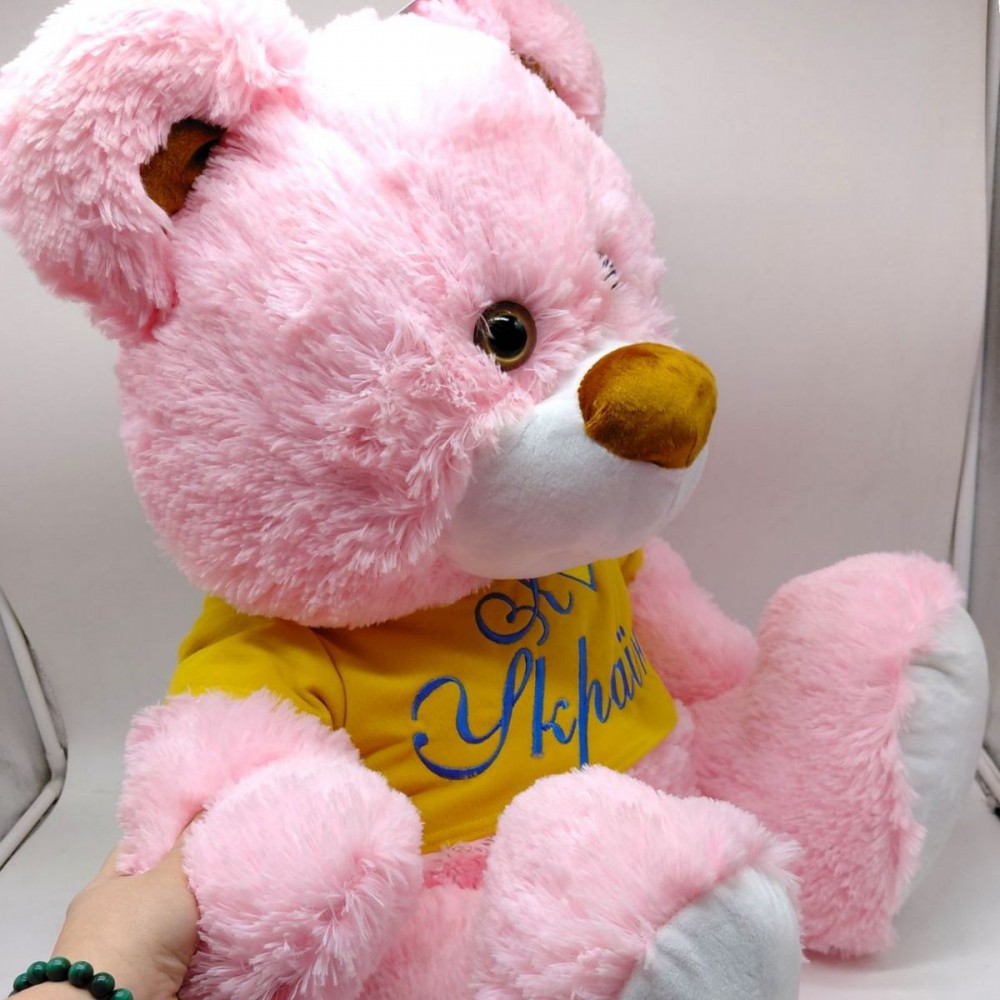 М’яка іграшка «Ведмідь Буркотун» - великий плюшевий ведмедик, який стане приємним подарунком для дитини або близької людини. Іграшка виконана у ніжному кольорі та має декоративну футболку з написом «Я люблю Україну», що додає їй особливого характеру та виразності.