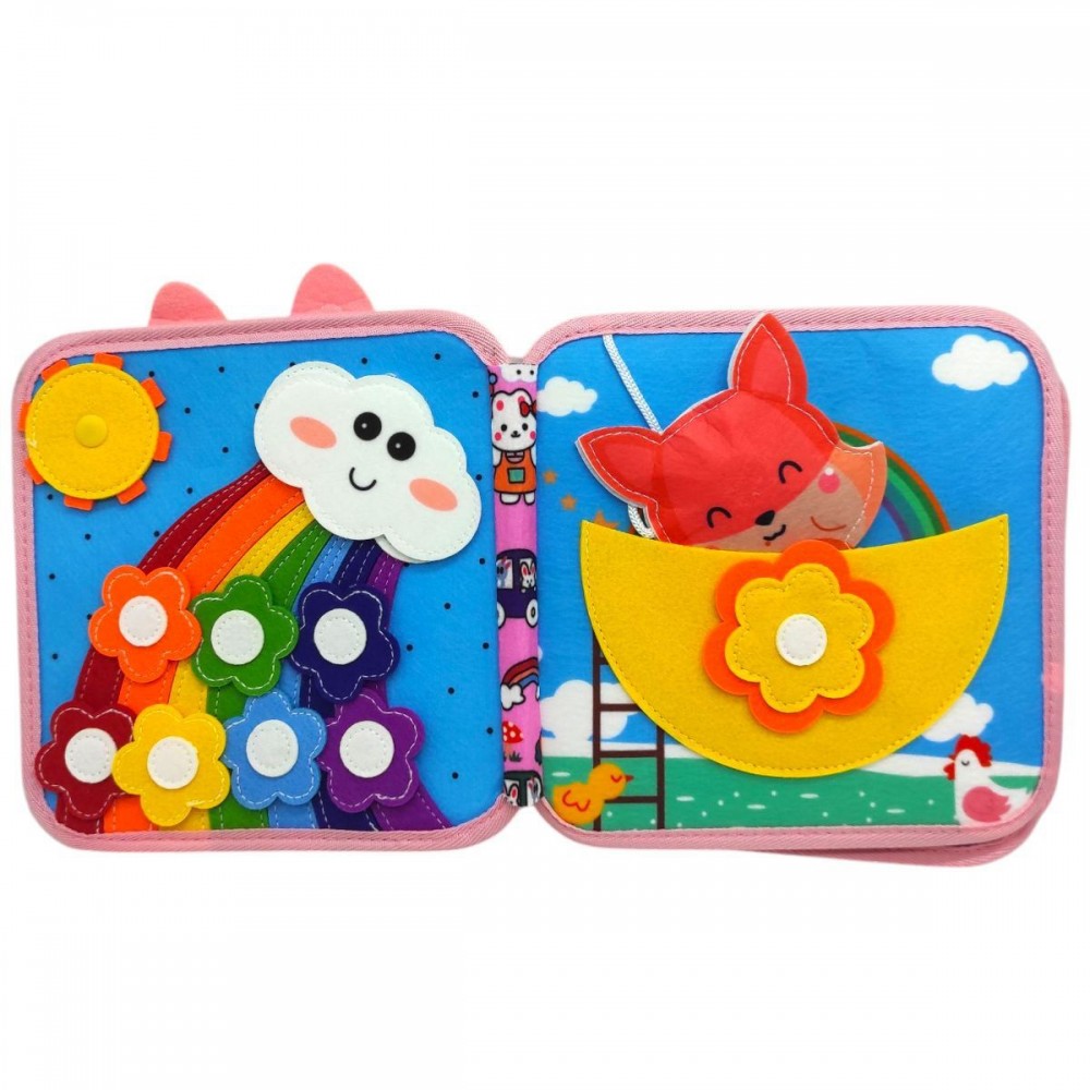 Інтернет-магазин eToys пропонує вашій увазі товар "Мʼяка книжка-бізіборд (фетр, пальчикові ігри, цифри, сортер по кольорах, пискавка, елементи на липучках та кнопках)" за ціною 787 грн..