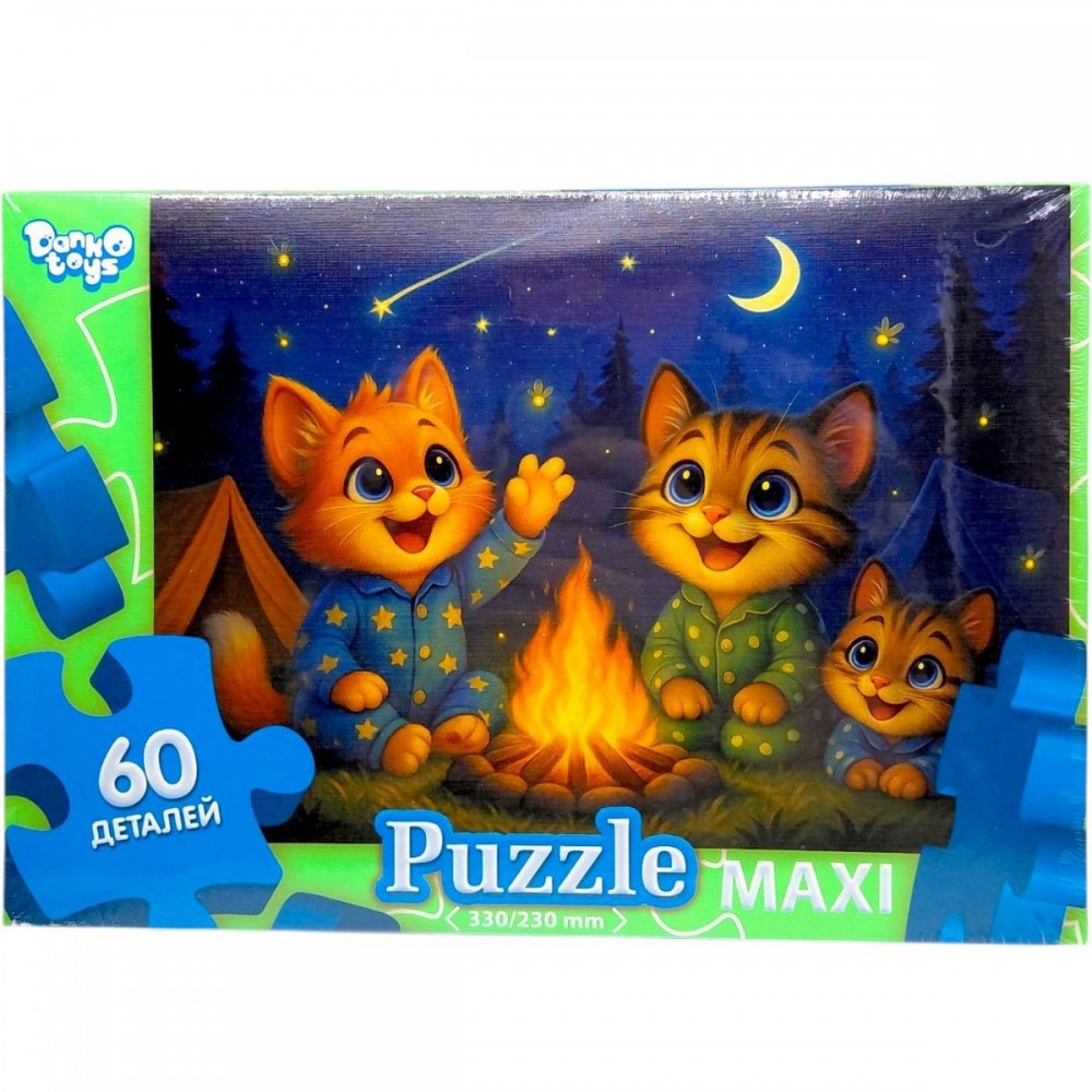 Максі пазли на 60 елементів - це яскрава розвивальна гра з великими деталями, створена спеціально для дітей молодшого віку. Барвистий сюжет із милими персонажами біля вогнища робить процес складання цікавим та захопливим.