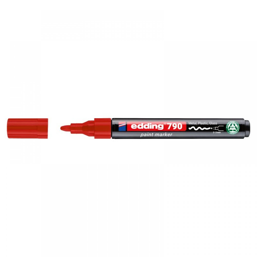 Лаковий маркер edding 790 забезпечує чітке, стійке маркування навіть на темних поверхнях. Завдяки густим чорнилам з високою покривною здатністю та округлому наконечнику (2–3 мм), він підходить для точного нанесення. Пише на таких матеріалах, як: метал, пластик, скло, суха деревина, картон, шкіра, лаковані поверхні. Маркер забезпечує довговічне та помітне покриття при використанні як в приміщеннях, так і на вулиці. Слід маркеру є волого-, зносо- , світло- та термостійким. Завдяки якісним чорнилам на спиртовій основі, слід маркеру швидко висихає та не розмазується. Ідеальний для виробництв, майстернь та побутових задач. Чорнила практично не мають запаху, не містять толуолу та ксилолу Виготовлений в Німеччині.