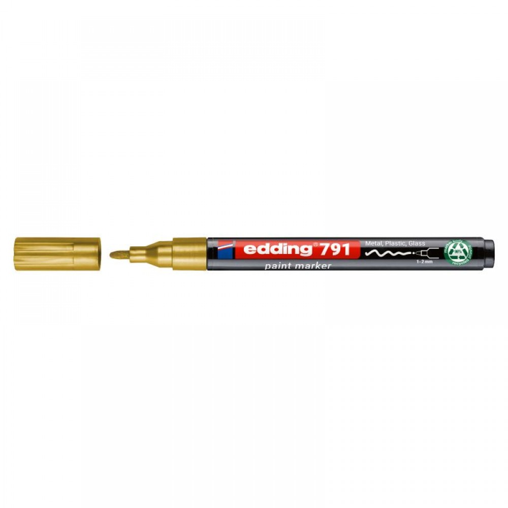 Лаковий маркер edding 791 забезпечує чітке, стійке маркування навіть на темних поверхнях. Завдяки густим чорнилам з високою покривною здатністю та округлому наконечнику (1-2 мм), він підходить для точного нанесення. Пише на таких матеріалах, як: метал, пластик, скло, суха деревина, картон, шкіра, лаковані поверхні. Маркер забезпечує довговічне та помітне покриття при використанні як в приміщеннях, так і на вулиці. Слід маркеру є волого-, зносо- , світло- та термостійким. Завдяки якісним чорнилам на спиртовій основі, слід маркеру швидко висихає та не розмазується. Ідеальний для виробництв, майстернь та побутових задач. Чорнила практично не мають запаху, не містять толуолу та ксилолу Виготовлений в Німеччині.