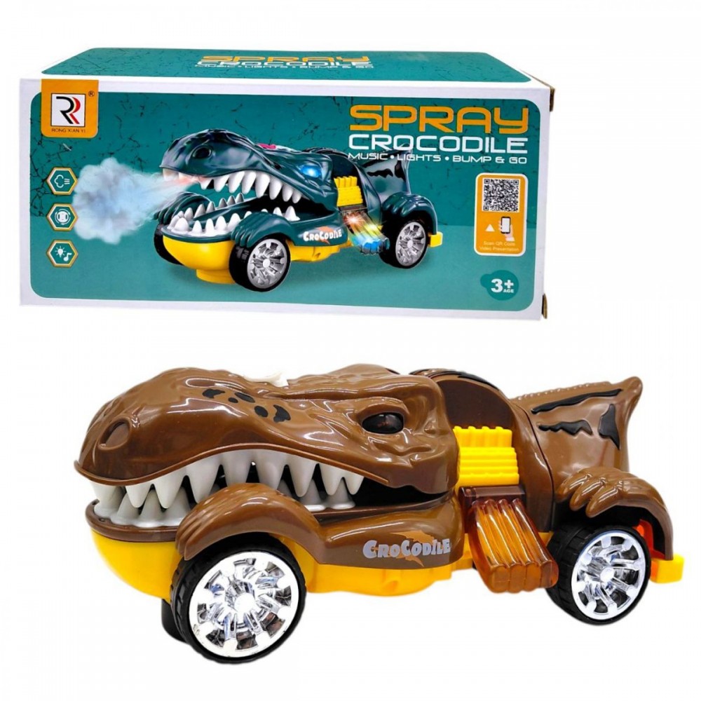 Машина «Крокодил» - це інерційна модель з ефектами світла, музики та диму. Після легкого поштовху автомобіль рухається вперед, а під час роботи активуються звукові та світлові сигнали.