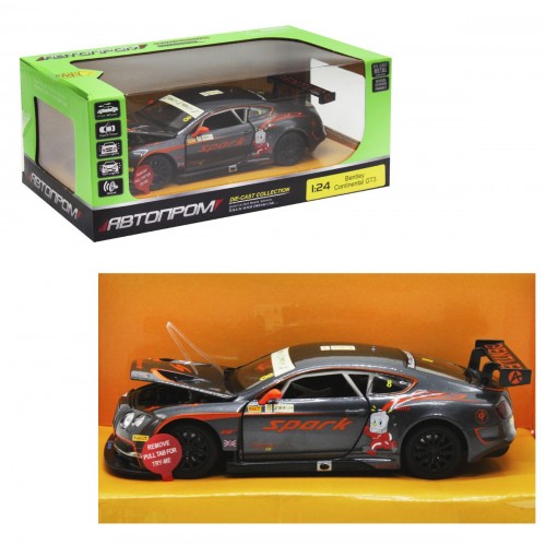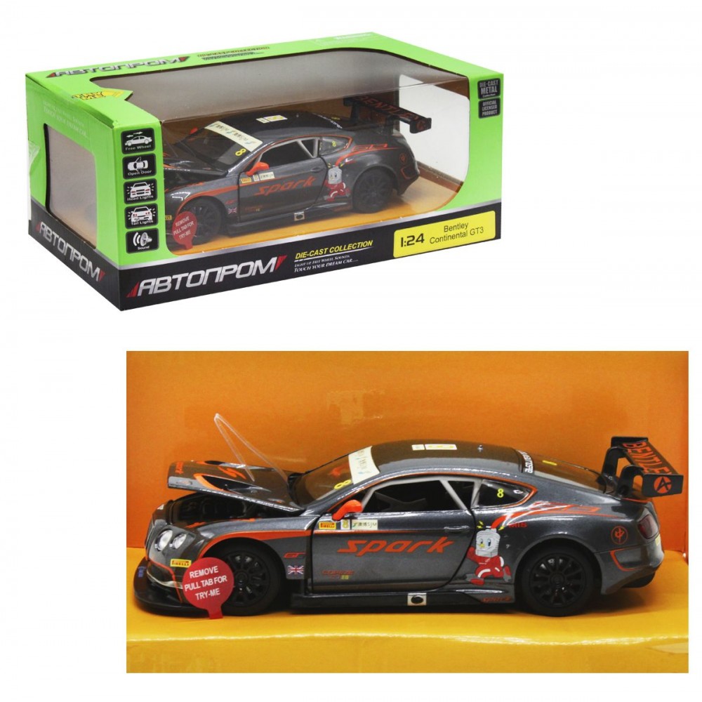 Машина металева "Bentley Continental GT3 Concept" із серії "Автопром". Інерційна, відкриваються двері і капот. Реалістичні звукові ефекти, світло передніх і задніх фар. Масштаб - 1:24.