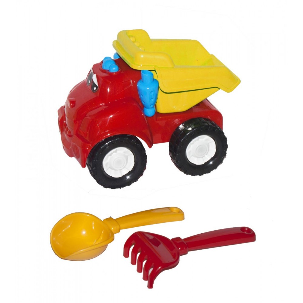Машинка "Смайл" з пісочним набором. Відкидний кузов. У наборі: граблі і лопатка (17 см).