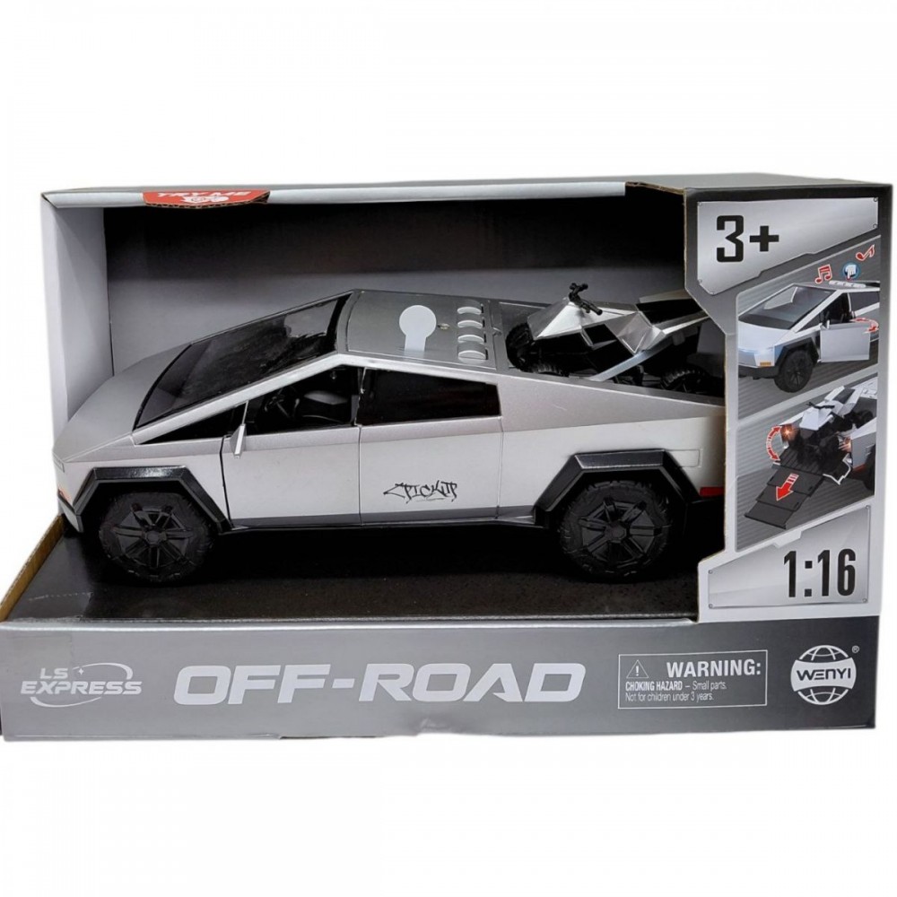 Машинка - це позашляховик із фрикційним механізмом, який рухається вперед після легкого поштовху. У комплект входить квадроцикл, що додає можливості для різних ігрових сценаріїв.