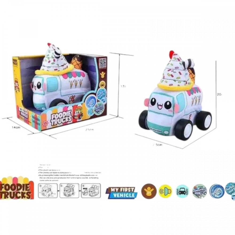 Інтернет-магазин eToys пропонує вашій увазі товар "Машинка м`яка "Фургон з морозивом", звуки транспорту, веселі мелодії, вібрація, знімний чохол, гумові шини, на батарейках, в коробці" за ціною 523 грн..