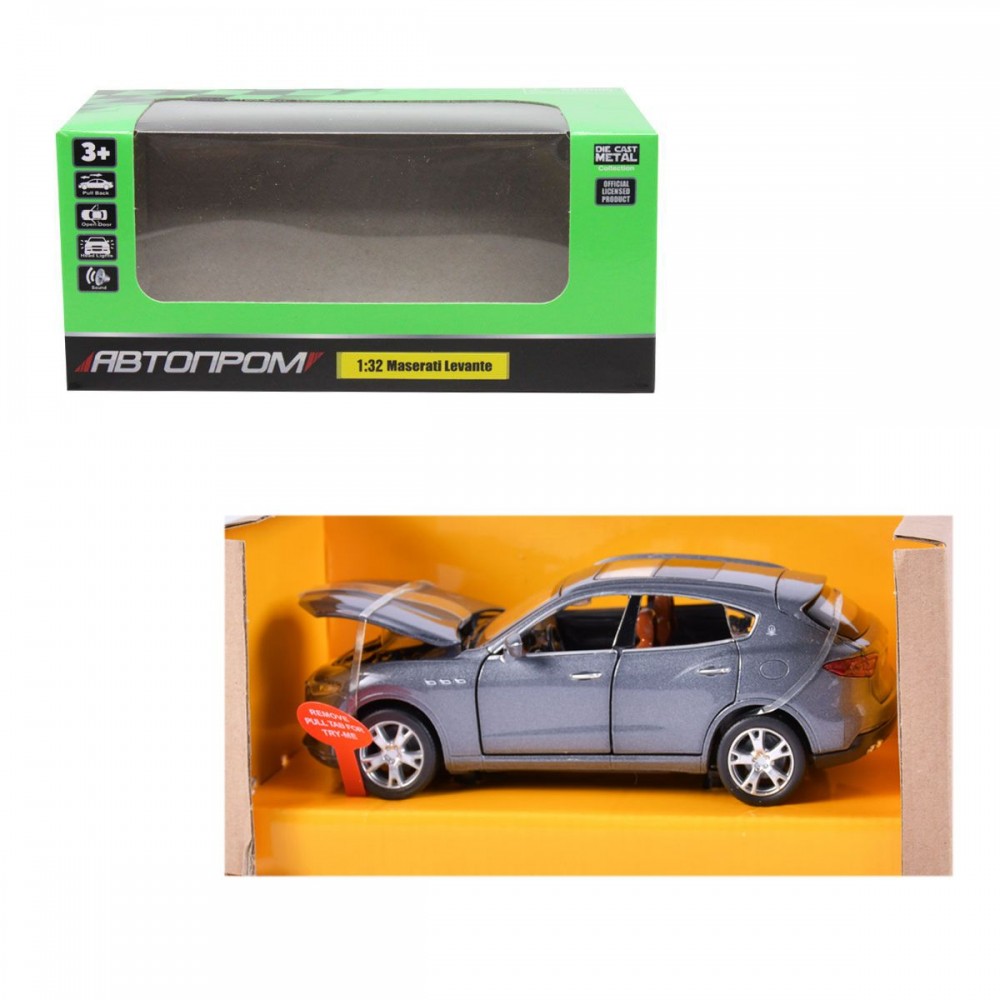 Реалістична металева модель Maserati Levante SUV. Інерційна, відкриваються передні та задні двері, капот та багажник. Дуже даталізована зовні та всередині. Оснащена звуковими (аварійка, звуковий сигнал, звуки двигуна) та світловими ефектами (світло фар). Масштаб – 1:32. Працює від 3-х батарейок AG13 (є в комлекет).