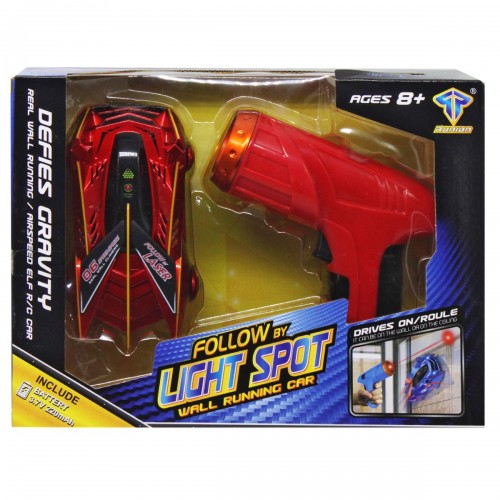 Машинка антигравітаційна "Wall Running Car". Турбіни, вбудовані в машинку всмоктують повітря, створюючи вакуум, утримуючи тим самим машинку в вертикальному положенні. Машина їздить по стінах і стелі, здійснюючи найрізноманітніші розвороти і трюки. Керування здійснюється за допомогою лазерного пульта-пістолета. Підсвічування фар. Розмір машинки - 15 см. Машинка працює акумулятора (є в комплекті), пульт від 3 батарей ААА (немає в комплекті).