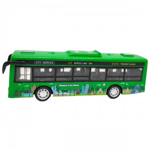 Ця іграшка є точною копією справжнього автобуса. Граючи з нею, діти дізнаються, як вони працюють у реальному світі. Її інерційний механізм дозволяє їй легко рухатися протягом тривалого часу. Натискання кнопки на нижній частині іграшки викликає кілька звукових ефектів, від реву двигуна до гудків. З одного боку відчиняються двері за допомогою спеціального механізму внизу транспорту. Рекомендовано для дітей віком від 3 років.
