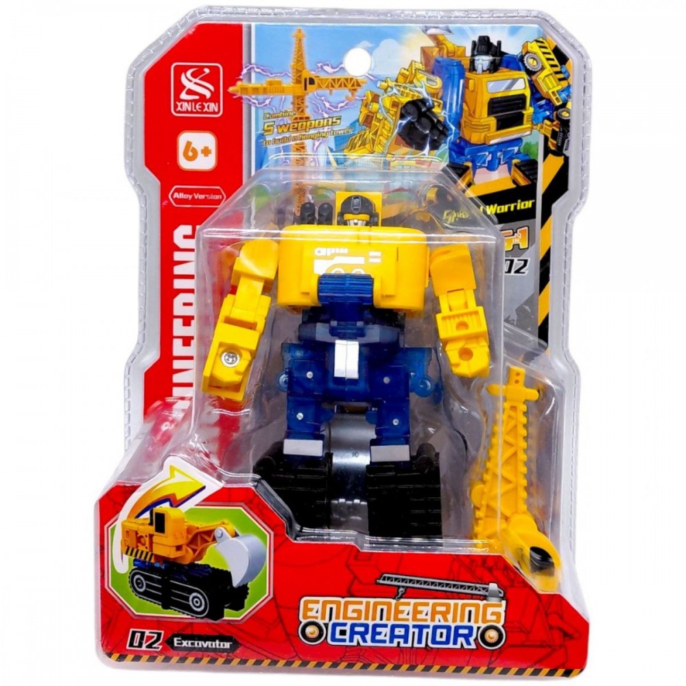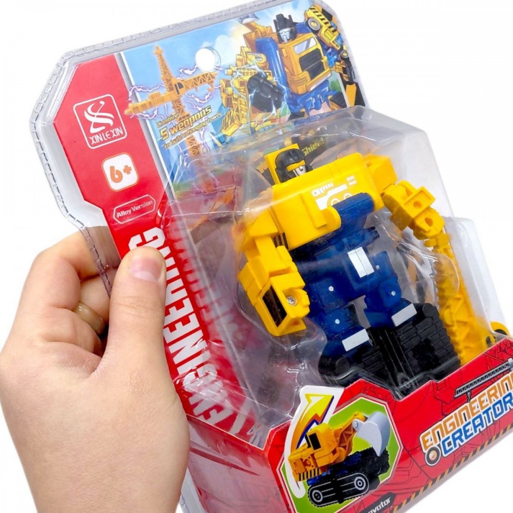 Машинка-трансформер - це іграшка 2 в 1, яка легко перетворюється з будівельної техніки на робота. Яскравий дизайн та зручний розмір 14 см роблять модель цікавою для активних сюжетних ігор.