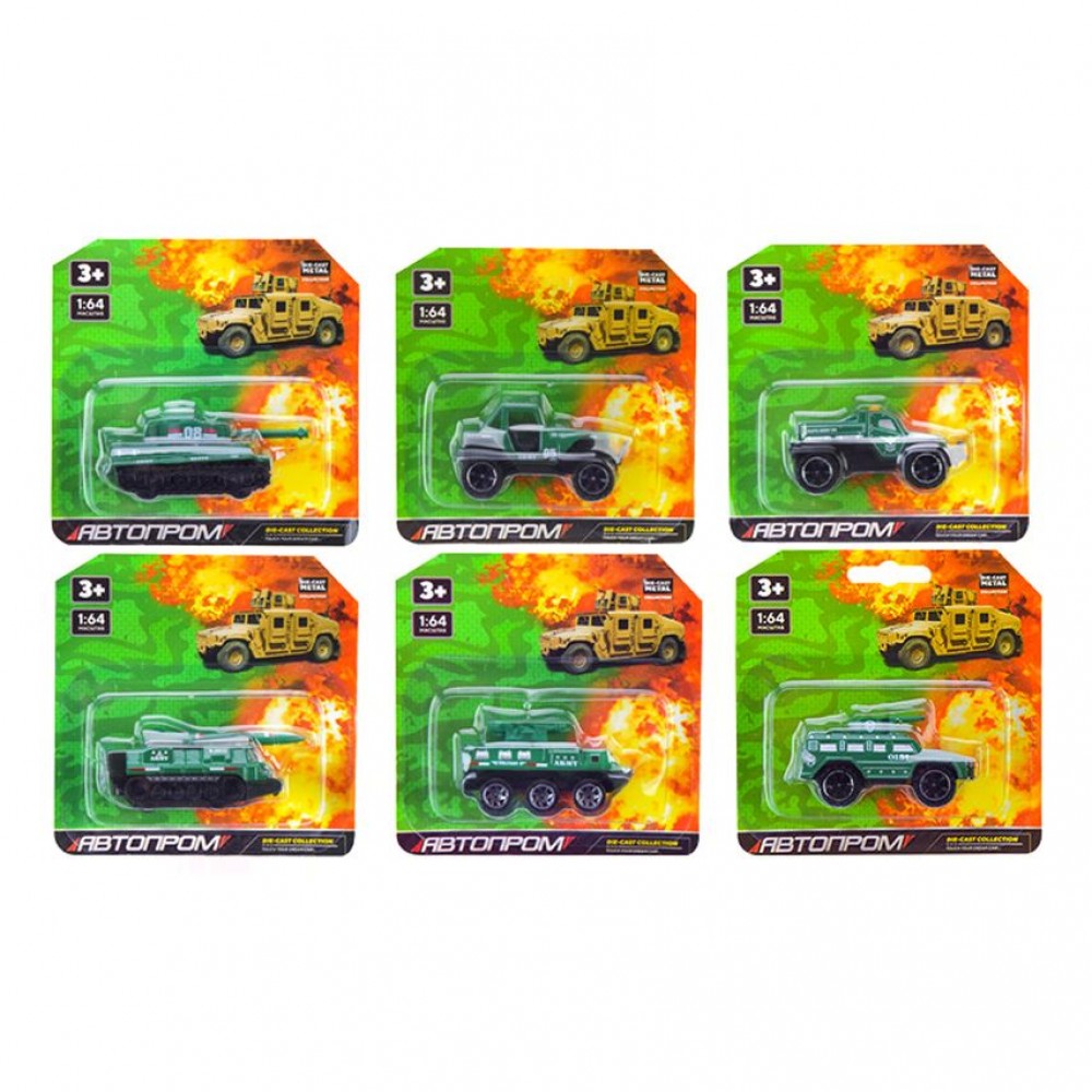 У наборі на вас чекає одна з декількох машинок, що представляють асортимент військових транспортних засобів. Ці детально опрацьовані металеві машинки уособлюють різноманітні види військової техніки, такі як танки, бронетранспортери, військові джипи та інші. Масштаб – 1:64.