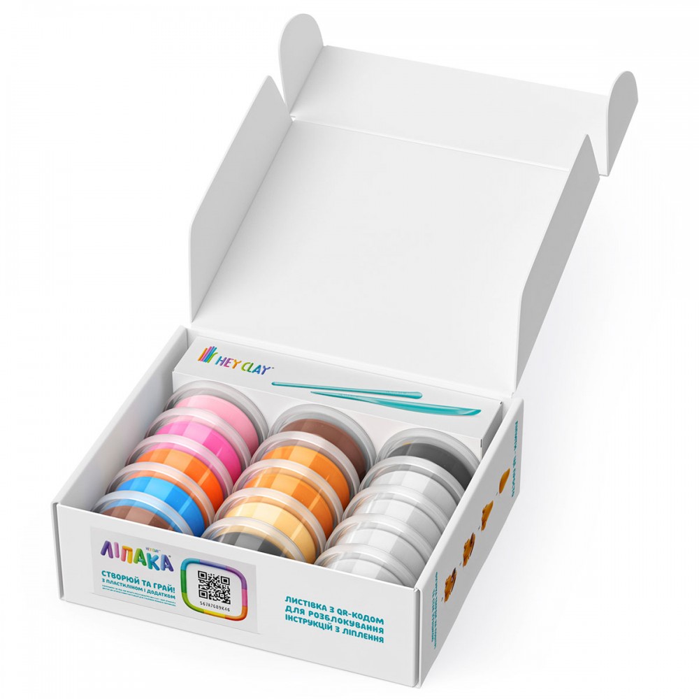 - У кожному наборі Ви знайдете код для доступу до відповідних героїв у додатку ЛІПАКА HEY CLAY з анімаційними інструкціями.