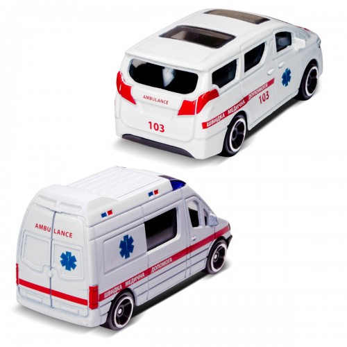 - У дисплеї представлені такі мінімоделі: швидка допомога, пожежна машина та сміттєвоз.