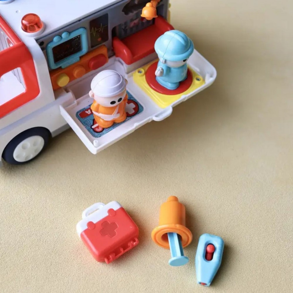 Інтернет-магазин eToys пропонує вашій увазі товар "Музична машинка ОЗВУЧУВАННЯ УКРАЇНСЬКОЮ МОВОЮ, "Швидка допомога", пісні, цікаві факти, віршики, підсвічування, сирена, 2 фігурки: пацієнт та лікар, 2 режими гучності, рухомі елементи, в коробці" за ціною 945 грн..