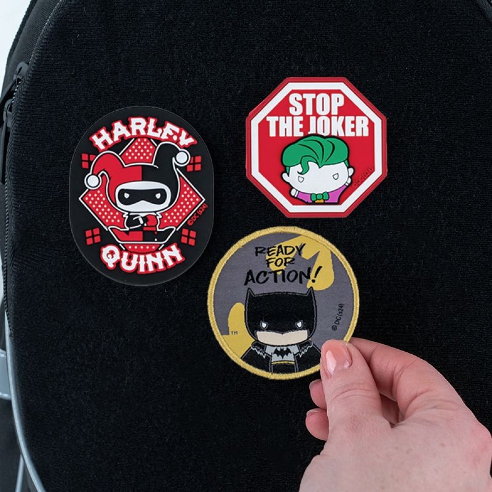 Бейджі на липучці на планшетці, запаковані у картону коробку, розмір бейджів: 5,6x7х0,5 см; 5,5х5,3х0,5 см; 5,7х5,7х0,2 см