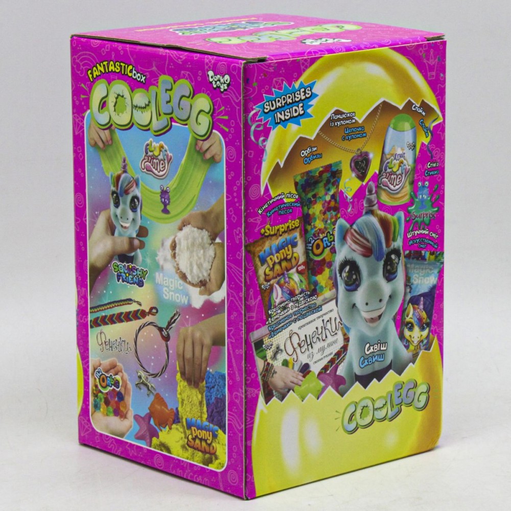 Набір-сюрприз для творчості Cool Egg стане приємним подарунком для дитини. У наборі є: кінетичний пісок, тісто для ліплення, орбізи, стикіз, слайм, штучний сніг, сквіш. У яйці може бути будь-який сквіш із колекції. Набір виконаний із безпечних матеріалів. Призначений для дітей віком від 3-х років.