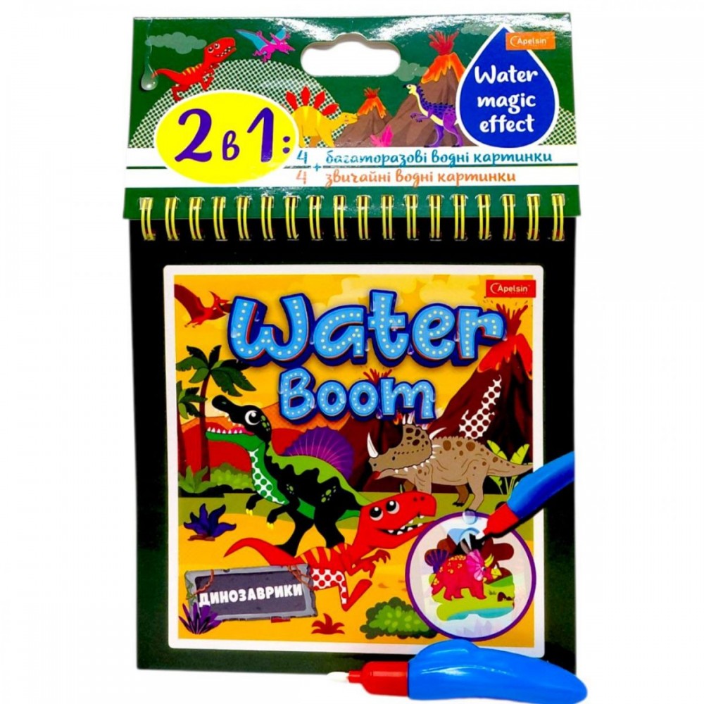Набір для малювання Water Boom - це цікавий творчий блокнот для дітей, який поєднує одразу два формати малювання. У комплекті передбачені сторінки для водного розфарбовування та класичні сторінки для розмальовування кольоровими олівцями. Під час використання водного маркера зображення проявляється на сторінках, створюючи ефект магічного малюнка.