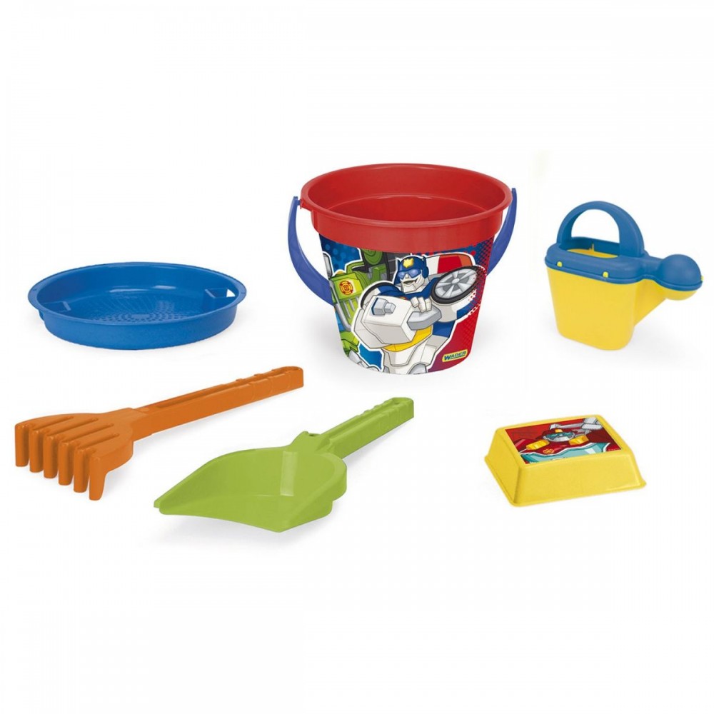 Набір для піску 6 ел. - Трансформери Hasbro від ТМ Wader перетворить літні ігри в пісочниці в захоплюючу пригоду. На елементах набору (відерці і формі для піску) Зображення Трансформери. Картинки нанесені за сучасною технологією IML (In-Mould Labelling), яка дозволяє зробити їх виключно стійкими. Відерце, сито, лопатка, граблі, формочка, лійка - справжня радість для маленького будівельника пісочних конструкцій. Такий елемент набору, як відерце можна використовувати не тільки для літніх ігор з піском, але і в будь який інший час року - для перенесення зберігання іграшок. Набір для піску виготовлений з якісних і безпечних матеріалів, які відрізняються міцністю і стійкістю до погодних умов.