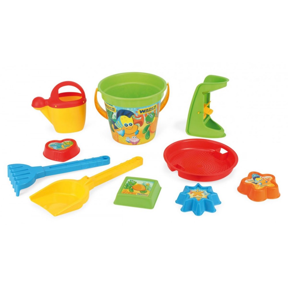 Набір для піску 10 елементів від польського виробника Wader - чудовий вибір для самих захоплюючих ігор в пісочниці або на пляжі. Завдяки яскравому дизайну і веселим картинках він буде дарувати малюкові чудовий настрій. Картинки володіють винятковою стійкістю завдяки спеціальній технології нанесення - IML. Барвисті і зручні лопатка, граблі, відерце, сито, 4 формочки, а також лійка або кораблик (в залежності від комплектації набору) дадуть дитині можливість створювати цікаві конструкції з піску. При цьому дитина буде розвивати фантазію і спритність ручок, а також отримає величезне задоволення. Окремі елементи набору можна використовувати протягом усього року: відерце - для перенесення кубиків або іграшок, а лійку - для догляду за кімнатними рослинами. Набір для піску виготовлений з якісних матеріалів, які абсолютно безпечні для малюків. Вони мають виняткову міцність і стійкістю до погодних умов. Доступний в 2 варіантах: з лійкою і корабликом. Упаковка - сітка.