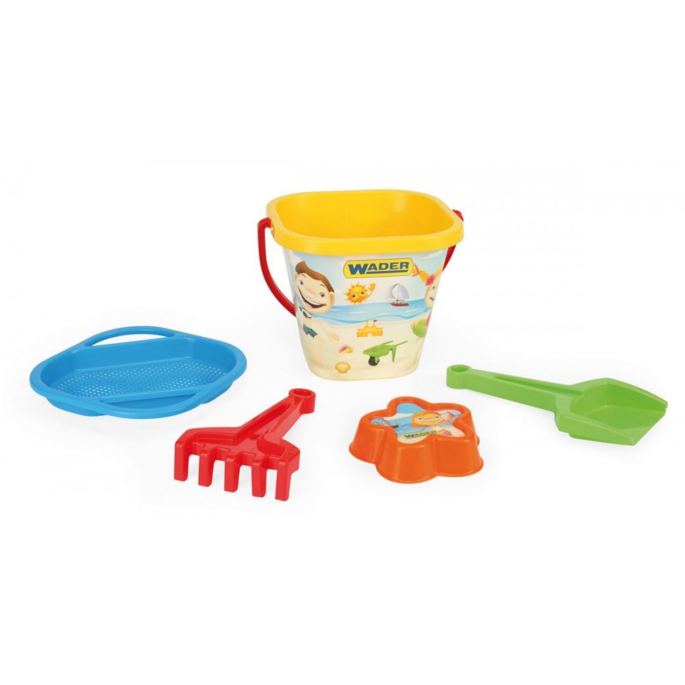 Набір для піску 5 елементів від польського виробника Wader - яскраве і красиве рішення для веселих літніх ігор. На відерце і формочку нанесені привабливі картинки, які відрізняються вражаючою стійкістю завдяки сучасній технології нанесення - IML (In-Mould Labelling). Набір ідеально підходить для ігор на пляжі, в саду або пісочниці. Відерце, сито, лопатка, грабельки і формочка подарують маляті безліч позитивних емоцій, сприятимуть розвитку фантазії, спритності і моторики маленьких ручок. Яскраве і зручне відерце може використовуватися в будь-який час року для перенесення іграшок, кубиків та інших предметів за бажанням малюка. Набір для піску виготовлений з міцних і якісних матеріалів, які є повністю безпечними для малюка і володіють стійкістю до погодних умов. Упаковка - сітка.