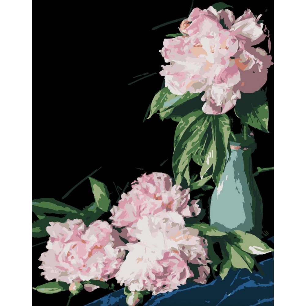 Інтернет-магазин eToys пропонує вашій увазі товар "Набір для розпису по номерах Рожеві півонії Strateg на чорному фоні розміром 40х50 см (AH1186-18)" за ціною 434 грн..