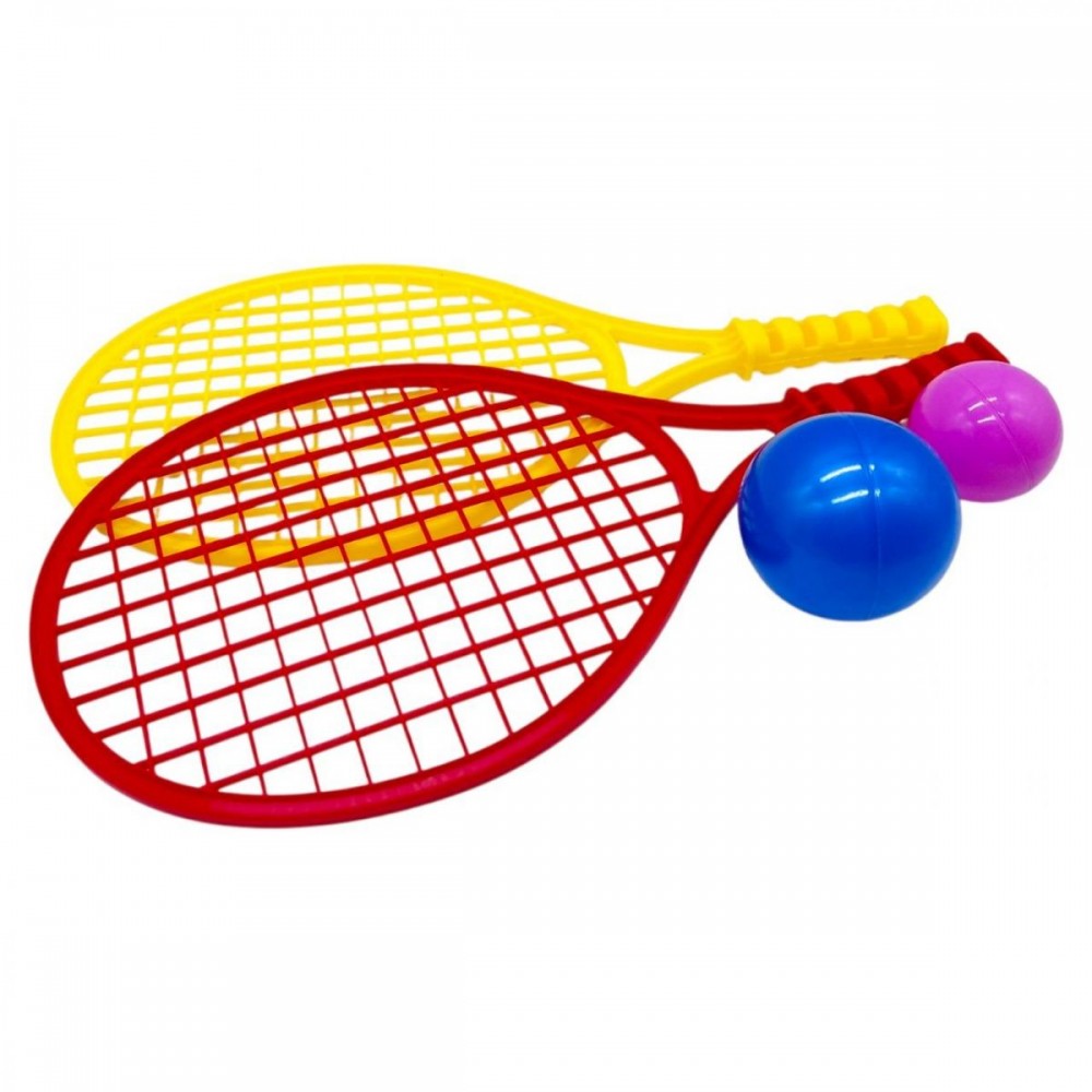 Набір для гри в теніс. У комплекті: 2 ракетки і пластиковий мʼячик. Розмір ракетки: 40,5 х 19 см. Діаметр мʼячика: 7 см. 2 види наборів в асортименті: рожева з чорної ракетки і сіра з помаранчевою.