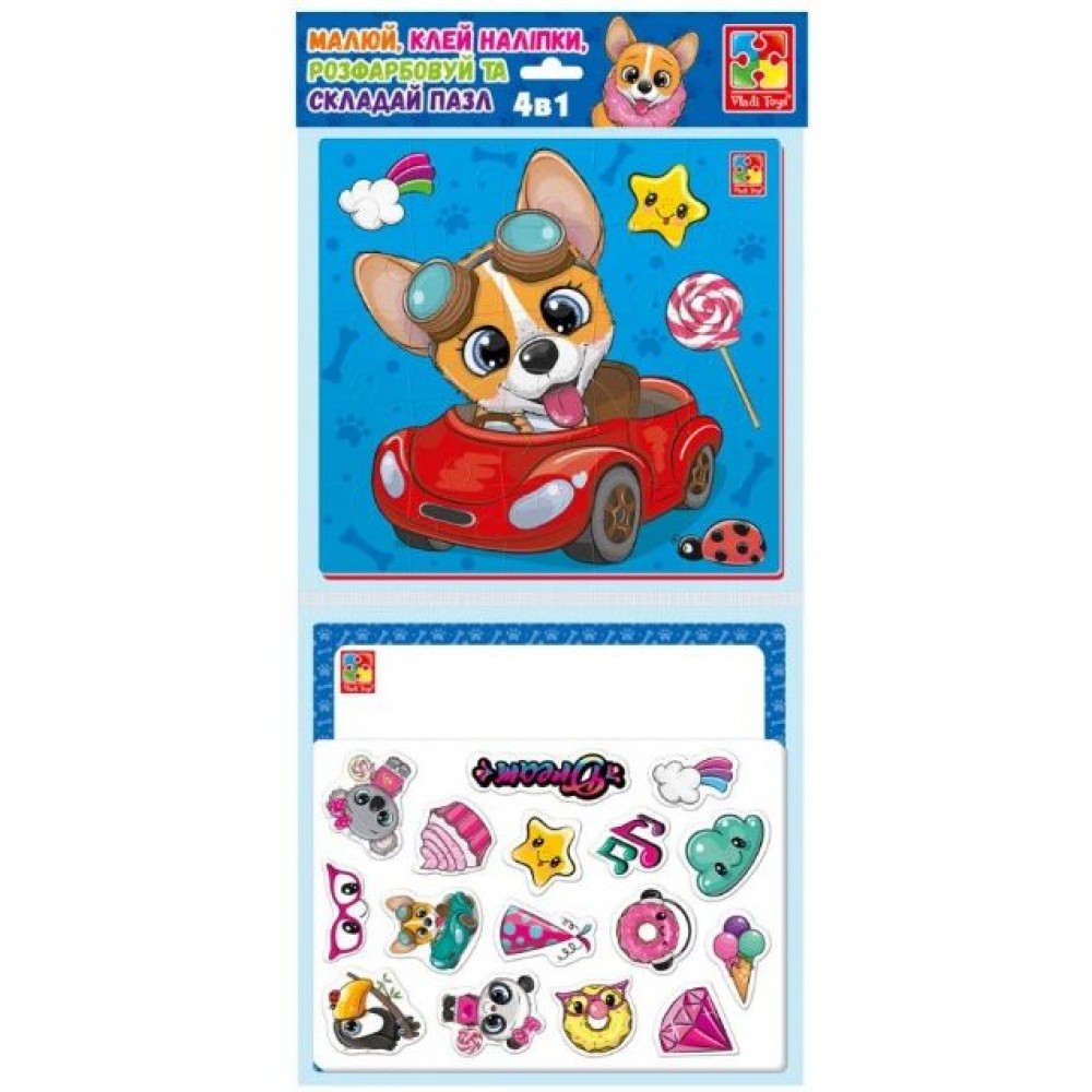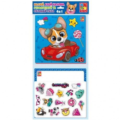 Пазл на 25 елементів, розмальовка, 16 наліпок, поле для декорування