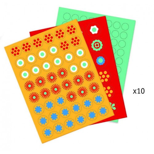 - 3 картинок-основ; - 300 об’ємних наклейок різного діаметру. Три картинки із зображенням білочки, метелика і сови виконані з кружечками для нанесення наклейок.