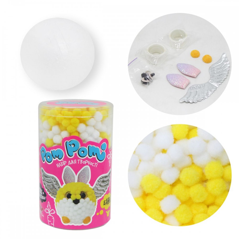 Набір для творчості "Pom pom". За допомогою такого набору можна створити милого пухнастого звірка. У комплекті є все для цього необхідне: пінопластовий шар-основа, помпони 2 кольори, клейові точки, крила, очі, ніжки, носик, вушка. Виконано з якісних і безпечних матеріалів. Для дітей від 3-х років.