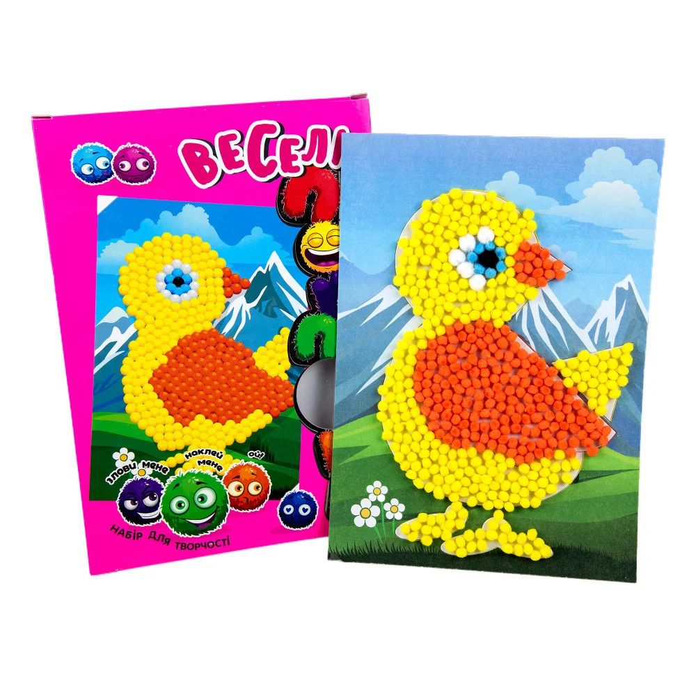 Аплікація "Веселі помпони" напевно сподобається вашому малюкові, а процес її створення принесе масу задоволення та позитивних емоцій. У комплекті ви знайдете кольорову основу з контуром малюнка і клейовим шаром, фетрові кульки. Дитині потрібно лише акуратно вклеїти різнокольорові фетрові кульки в контур малюнка відповідно до зразка. Яскрава картинка "Веселі помпони" прикрасить кімнату дитини або стане подарунком, зробленим власними руками для друзів і рідних. Набір сприяє розвитку дрібної моторики рук, творчих та художніх здібностей дитини. В комплекті: картина-основа, клейовий шар, фетрові кульки, інструкція. Підійде для дітей віком від 3-х років.
