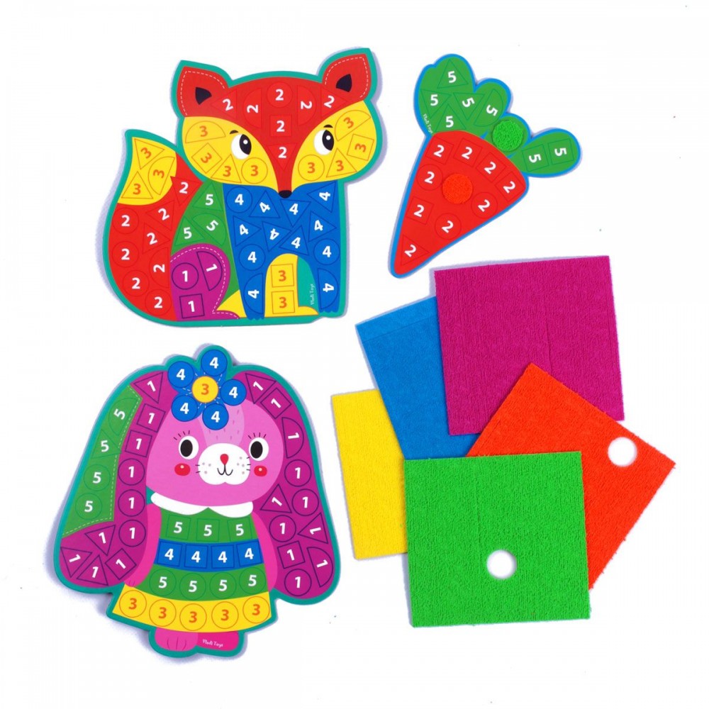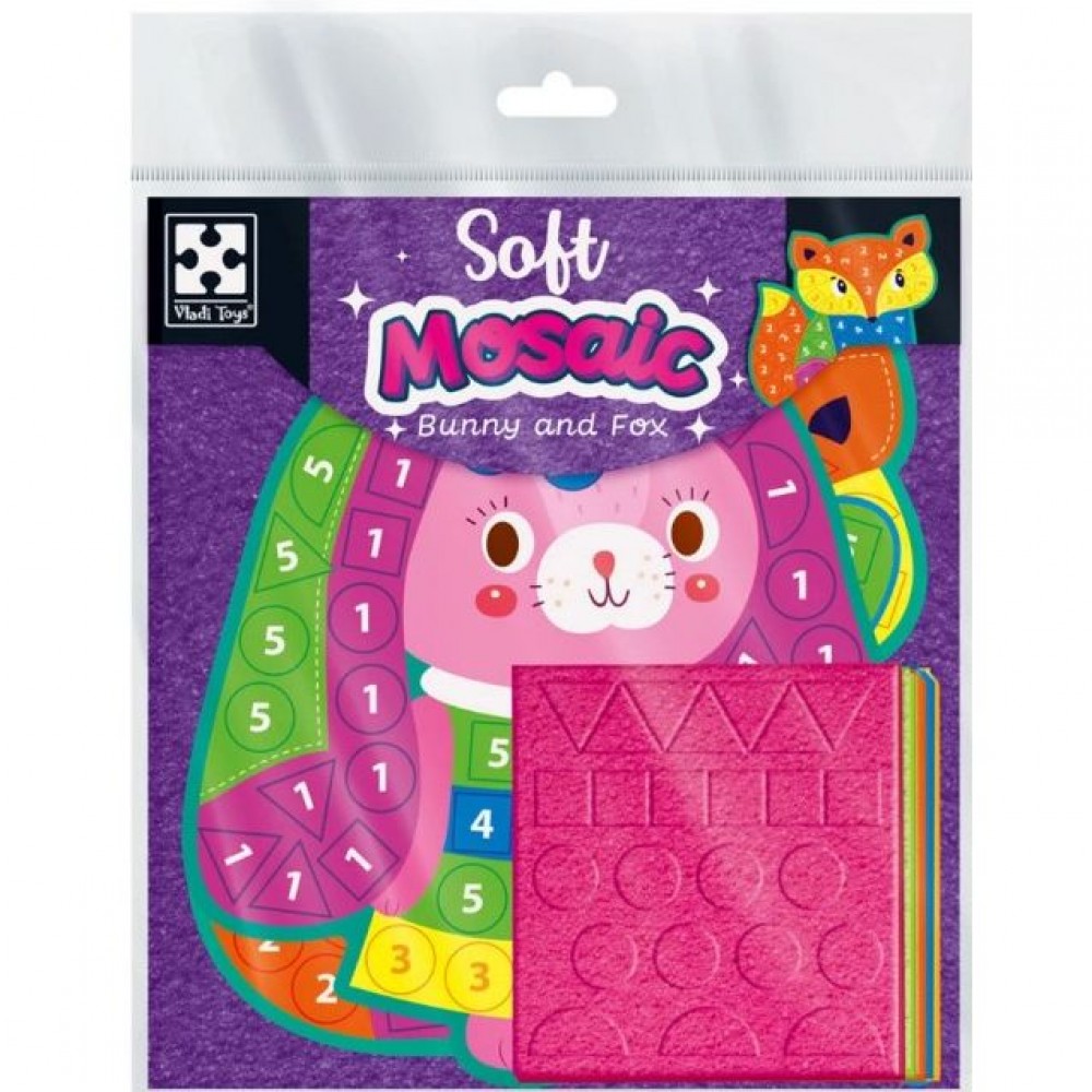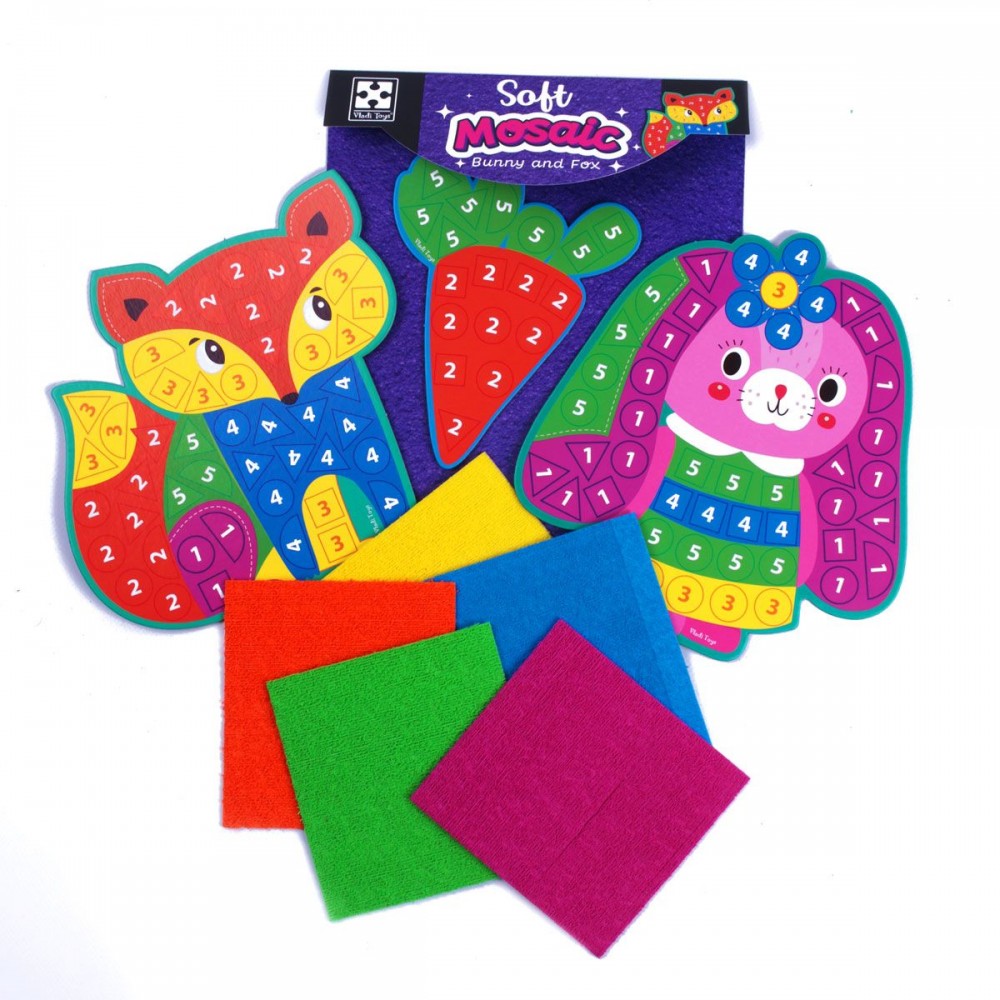 Набір для дитячої творчості зі плюшевою мозаїкою. Складається з 5-х яскравих картонних основ та трьох мʼяких планшетів з елементами мозаїки. На основах контуром зображені підказки про те, які елементи потрібно клеїти. Набір допомагає малюкам розвинути дрібну моторику та відкрити нові творчі здібності.